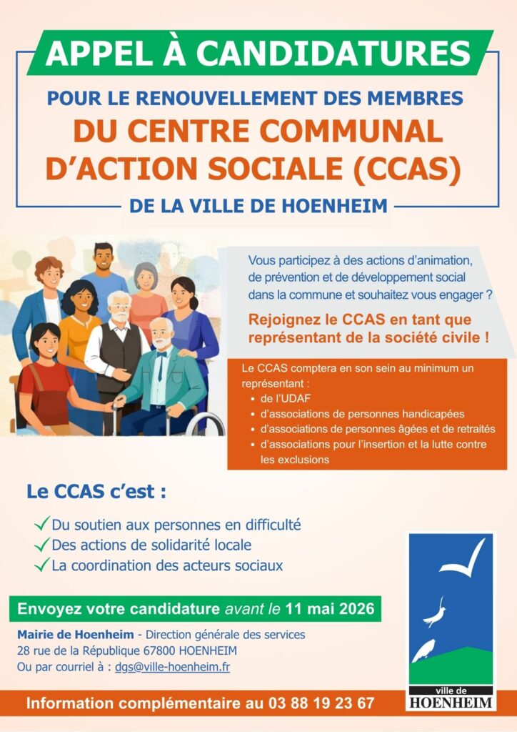 Vous souhaitez inscrire votre/vos enfants à la restauration scolaire et/ou aux garderies périscolaires pour l’année scolaire 2026-2027 : Les inscriptions sont ouvertes du lundi 20 avril jusqu’au vendredi 5 juin 2026 sur portail.ville-hoenheim.fr Il faudra déposer les documents suivants sur votre espace : L’attestation de quotient familial L’attestation d’assurance scolaire et extrascolaire 2026/2027 Une attestation d’employeur des […]